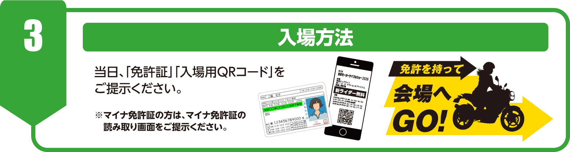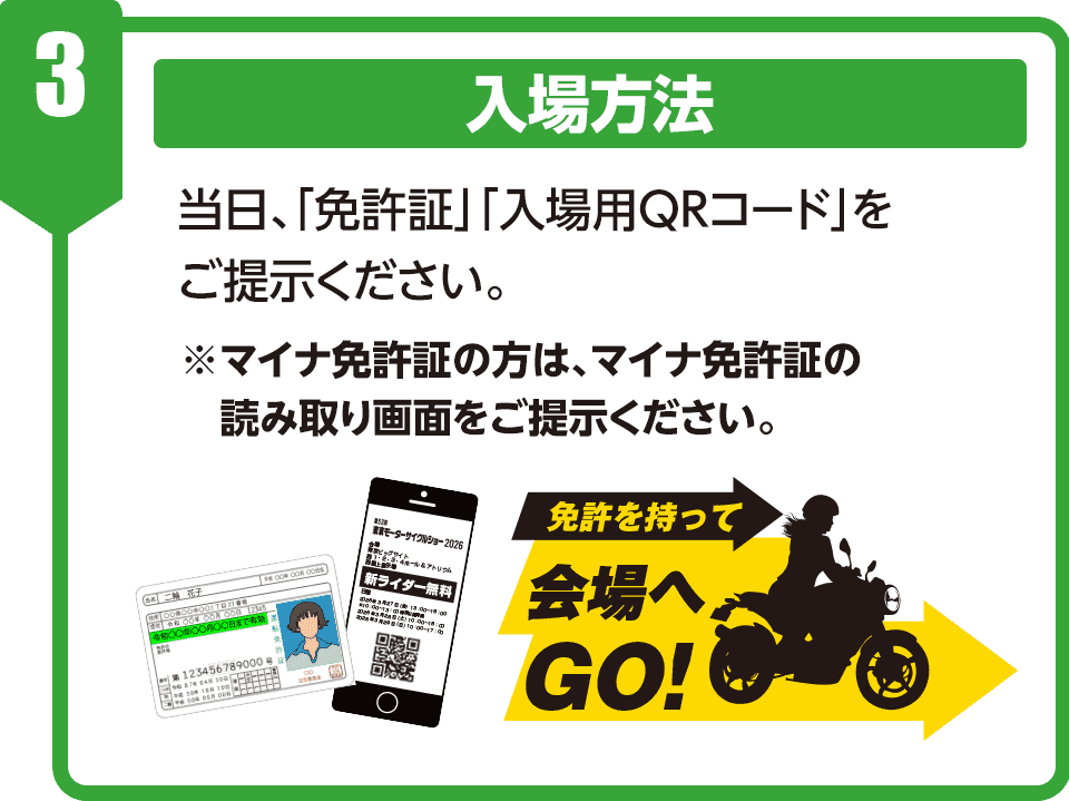 ※入場の際に免許証の提示が必要です。