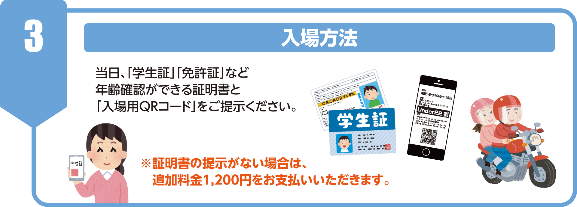 ※入場の際に年齢を確認できる証明書の提示が必要です。証明書の提示がない場合は、追加料金1,200円をお支払いいただきます。