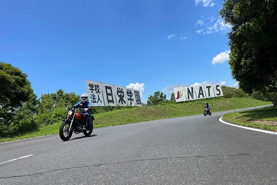 授業の約8割が実習で、豊富な車両や教材を使いながら、二輪実習や部活動も充実しています。