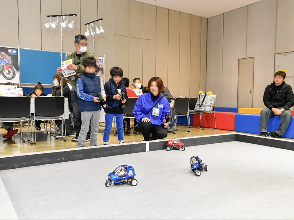 模型メーカー・タミヤによるアクセサリー⼯作教室、RCバイク操縦体験コーナー。 ⼤⼈も嬉しいプラモデルの展⽰販売もあります!